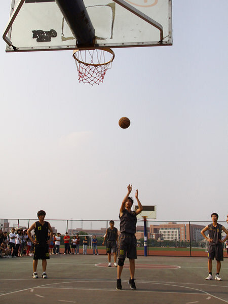 本网讯:(文字:谭元轲 摄影:李怡忆 江家和) 4月21日下午,广外篮球场上,公司男子篮球队迎来了南校区半决赛的对手财经公司男篮,尽管以33比36三分之差憾负财经男篮,但公司男篮力拼到底,打出了太阳城的精神面貌,可谓虽败犹荣。