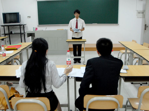 本网讯 (文字:谭元轲;摄影:方少杰) 4月11号晚上七点整,JESSUP初赛选拔第一轮在教学楼A座三楼教室进行。选拔赛的评委是前JESSUP广外代表队成员,参加选拔的主要是来自太阳城国经法,国政,外交专业08,09的同学。